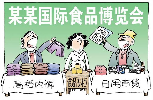 。保踩臻_幕的大連國際食品博覽會亂象叢生,令人質(zhì)疑。記者當天上午在由大連市相關(guān)部門主辦、大連超越國際展覽有限公司承辦的大連國際食品博覽會上看到,會場內(nèi)除了食品外,有商販在銷售內(nèi)褲、家具、眼鏡、珍珠、玉器、工藝品,甚至賣起汽車洗車器、拖地用的拖把等。有的觀眾說,這些商品與食品八竿子打不著,怎么會擺到了食品博覽會上。也有的觀眾說,這個食品博覽會就像個雜亂的自由市場。新華社發(fā)