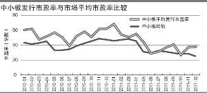 圖四:中小板發(fā)行市盈率與市場平均市盈率比較