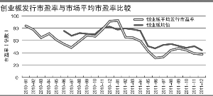 圖五:創(chuàng)業(yè)板發(fā)行市盈率與市場平均市盈率比較