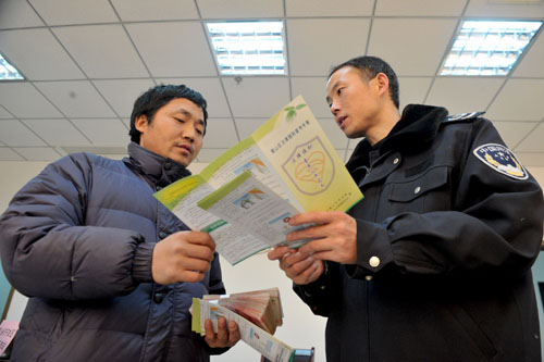 元旦前,合肥市蜀山經(jīng)濟開發(fā)區(qū)管委會內(nèi),司法部門工作人員張保武(右)在給拿到工資后的農(nóng)民工殷喜發(fā)講解法律援助知識。蜀山經(jīng)濟開發(fā)區(qū)一工地內(nèi)的近八百位農(nóng)民工辛苦工作一年的工資,本該在去年9月發(fā)放,但農(nóng)民工們卻遲遲拿不到手。12月初,多次討薪未果的農(nóng)民們找到蜀山經(jīng)濟開發(fā)區(qū)法律援助站。該站在接到投訴后一方面積極協(xié)調(diào)、敦促欠薪單位籌措資金償還欠款,一方面耐心安撫農(nóng)民工,在10天內(nèi)成功解決了欠薪問題。新華社記者