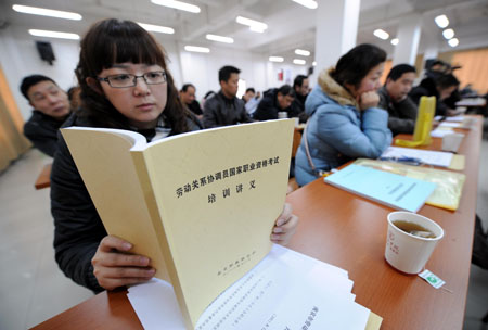 建立文明的勞動法制度,建設和諧的勞動關系,是建立和諧社會的組成部分。 圖為不久前南京市舉辦的首期勞動關系協(xié)調員國家職業(yè)資格培訓班。勞動關系協(xié)調員是國家公布的十批106個新職業(yè)中最新的一個職業(yè)工種,其主要工作內容包括實施勞動標準、管理勞動合同、開展集體協(xié)商、制定和實施內部規(guī)章制度、開展勞資溝通和民主管理以及協(xié)調處理員工申訴和勞動爭議。記者