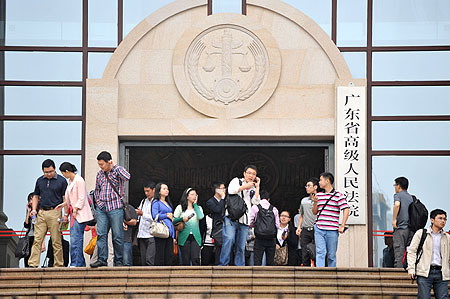 奇虎與騰訊的兩項(xiàng)訴訟,使法律得到一個(gè)對(duì)3Q之戰(zhàn)進(jìn)行梳理的機(jī)會(huì)。圖為4月18日參加奇虎訴騰訊一案庭審的人員在庭審后走出廣東省高院。記者