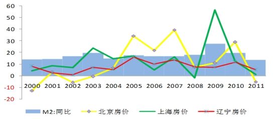 近十年,我國(guó)M2和房?jī)r(jià)都保持了較快增長(zhǎng)速度,但由于我國(guó)住房商品化時(shí)間還不長(zhǎng),還未經(jīng)歷一個(gè)完整的房地產(chǎn)周期,我們不能從表象判斷我國(guó)房?jī)r(jià)上漲由M2高增長(zhǎng)導(dǎo)致。
