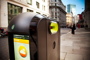 圖為倫敦奧運(yùn)會期間,英國一家科技公司在倫敦街頭安放的智能垃圾箱。 資料照片 |