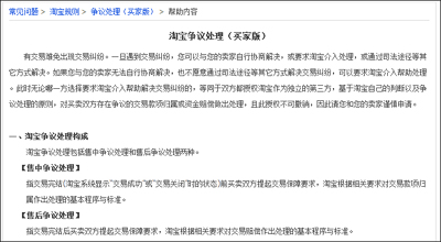 圖為淘寶網(wǎng)上顯示的淘寶爭(zhēng)議處理規(guī)則。 網(wǎng)絡(luò)截圖 |