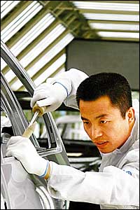汽車博覽會歷來是各大汽車生產(chǎn)企業(yè)角逐的舞臺,它不僅展示企業(yè)產(chǎn)品,擴大品牌影響,而且是企業(yè)綜合實力的較量。多年來,一汽大眾的展車都是花大筆錢聘請德國專家來做,而且每次都不讓中方員工參與,理由是怕影響展車質(zhì)量。 “外國人能做到的我們也能做到!北е@樣的信念,王洪軍悄悄地開始揣摩探索。 一天下班,王洪軍走進了展車制作現(xiàn)場,看見德國專家焊的行李箱搭接縫沒焊完,他就試著焊了一段。第二天德國專家發(fā)現(xiàn)后,厲聲問道:“這是誰干的?”王洪軍的臉一下子紅了。德國專家拍拍他的肩膀說:“小伙子,我都干了23年了。干不了最好別亂動! 那天晚上,王洪軍失眠了。他深知干展車的功夫不是一朝一夕能練成的,但他不能等23年啊。他再次鉚足了勁揣摩做展車的技術(shù)。 功夫不負有心人。經(jīng)過幾年的反復實踐和摸索,王洪軍掌握了壓痕、劃傷、波浪、坑包等“白車身”表面缺陷的處理絕技,總結(jié)出“手掌放平,著力點集中,勻速運行,出手慢,回手快”的整修操作方法,創(chuàng)造出包括轎車“白車身”表面缺陷修復法、漆后鈑金缺陷修復和噴漆方法、車身間隙平度超差調(diào)整方法、展車制作方法等4個部分50多項100多種簡捷適用的轎車鈑金快速修復法,并出版了《王洪軍轎車車身維修調(diào)整方法》。 。玻埃埃衬辏丛,王洪軍的創(chuàng)新成果經(jīng)一汽大眾中德質(zhì)保專家組嚴格評審鑒定,被正式命名為“王洪軍轎車鈑金快速修復法”。專家一致認為,這一成果具有重大的理論突破,對車身表面修復有很高的應用價值,整體研究成果居國際先進水平。 從這年開始,一汽大眾啟用了王洪軍的展車制作法,從此結(jié)束了聘請外國專家做展車的歷史。當年,王洪軍只用兩周就出色地完成了德國專家要1個月才能完成的展車制作任務。近3年來,王洪軍制作展車189臺,為公司節(jié)約費用700多萬元。 王洪軍用他的智慧和汗水為一汽爭得了榮譽,為祖國的汽車工業(yè)作出了杰出的貢獻。他先后榮獲吉林省和全國“五一”勞動獎章,被授予全國機械行業(yè)“技能大師”、技術(shù)創(chuàng)新“十佳能手”等榮譽稱號。面對接踵而來的各種榮譽,王洪軍說,榮譽屬于過去,創(chuàng)造和奉獻才是應該永遠追求的。 |