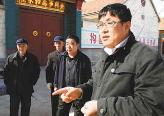 王軍(右一)到“村企共建”木李村商議“小康村建設(shè)”事宜。杜劍