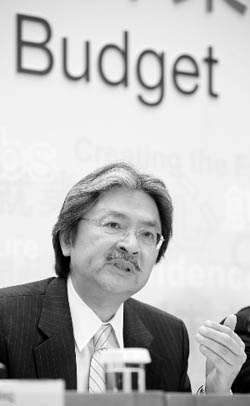 曾俊華出席新聞發(fā)布會。傳真圖 | “2008年香港全年本地生產總值僅增長2.5%,增速為十年來最低水平。2009年將更加艱難,無論是對外貿易還是內部需求,預料均表現(xiàn)呆滯,預計香港全年本地生產總值將出現(xiàn)2%-3%的負增長。”香港財政司司長曾俊華昨日在宣讀其上任后第二份財政預算案時表示。這也意味著,香港經濟將結束自1998年亞洲金融風暴以來持續(xù)增長的局面,再次陷入負增長的困境。 事實上,受到金融危機及全球經濟放緩影響,香港2008年GDP增長已逐季放緩,由第一季度的7.3%降至次季的4.3%,第三季度僅有1.7%,第四季度更出現(xiàn)收縮2.5%。 曾俊華表示,目前難以準確估計經濟何時可以復蘇,但政府不會隨經濟下滑及政府收入減少而緊縮開支,而會采取反經濟周期的開支政策。政府2009-2010年度的總支出將超過3000億港元,以紓緩經濟收縮的壓力,以及增加內需和就業(yè)機會。 曾俊華說,為提升香港的整體競爭力,會加快研究及推動各項重大跨境基礎設施建設,包括港珠澳大橋、廣深港高速鐵路、港深機場軌道聯(lián)絡線及蓮塘/香園圍口岸。他說:“香港2009/2010年度的基本工程開支預算高達393億港元! 曾俊華還表示,香港將全方位推動粵港澳三地合作。為配合國家發(fā)改委今年1月公布的《珠江三角洲地區(qū)改革發(fā)展規(guī)劃綱要》,粵港雙方同意優(yōu)先集中推動四個合作領域,包括金融業(yè)、服務業(yè)、基礎設施和城市規(guī)劃、創(chuàng)新和科技,以便更有效和快速地推進《綱要》的落實工作。
