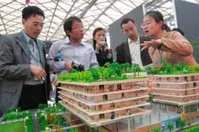 2006中國(guó)國(guó)際豪宅展在上海新國(guó)際博覽中心拉開(kāi)帷幕。本次展會(huì)共吸引了來(lái)自全球20多個(gè)國(guó)家和地區(qū)60余家頂級(jí)房產(chǎn)項(xiàng)目參展。圖為一位展商正在向觀眾介紹一個(gè)以“空中花園”為賣(mài)點(diǎn)的高檔樓盤(pán)項(xiàng)目。實(shí)習(xí)生