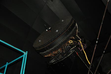 乘電梯上至五層,來到了LAMOST的半球形圓頂內(nèi),被稱為反射施密特改正鏡(也叫MA)的巨大圓形鏡面出現(xiàn)在眼前。MA由24塊六邊形的鏡片拼接而成,口徑是5.72米×4.40米。LAMOST項目總經(jīng)理、國家天文臺興隆觀測基地主任趙永恒對記者說,MA的作用是:接收來自宇宙深處的天體光譜光線,然后經(jīng)過自身的形變和反射,即篩選處理(所謂“改正鏡”便是此意),將調(diào)整后的光線反射到球面主鏡(也叫MB)上。