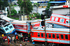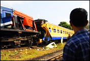 印度尼西亞楠榜省2008年08月16日發(fā)生兩列火車相撞事故。當?shù)鼐秸f,至少有8人在事故中遇難,另有26人受重傷、33人受輕傷。事故原因仍在調(diào)查中。印尼的鐵路交通相對落后且管理較差,火車相撞或火車與汽車相撞的事故經(jīng)常發(fā)生。[詳細] | |