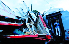 2008年09月14日,洛杉磯火車相撞事故現(xiàn)場的搜尋遇難者工作已經(jīng)結(jié)束。12日下午4時30分左右,正值交通高峰期,一列搭乘了225名乘客的洛杉磯通勤客運列車行駛到距離市中心約40公里的卡茲沃斯時,在一個彎道處與一輛貨運列車猛烈相撞。[詳細] | |
