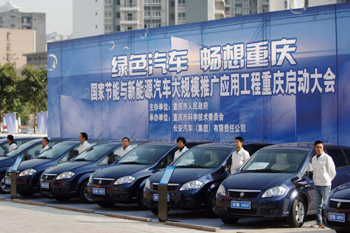 2008年11月27日,重慶市政府向長安汽車集團(tuán)采購的首批混合動力政府公務(wù)用車正式交付使用。新華社記者 劉潺