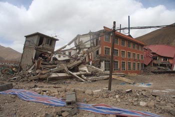 青海玉樹地震災(zāi)區(qū)現(xiàn)場。新華社記者 任曉剛 攝 |