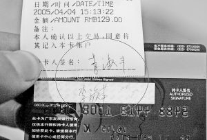 2005年4月,鄭州一消費者李女士丟失的兩張信用卡,被人拾去后,在1小時之內刷掉4萬多元。李女士在用另一張廣發(fā)信用卡做測試中發(fā)現(xiàn),刷卡時的簽名明顯不符,但依然消費成功。(資料圖片)小曉攝 | 簽名信用卡被盜刷