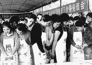 參加培訓(xùn)的戶改人員與用人單位供需見面會(huì)現(xiàn)場(chǎng)。本報(bào)記者 劉裕國(guó)