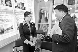 2008年12月25日,一位留學(xué)人員(右)在第十一屆留交會的上海展位前與工作人員交流。當(dāng)日,第十一屆中國留學(xué)人員廣州科技交流會在廣州舉行。新華社記者