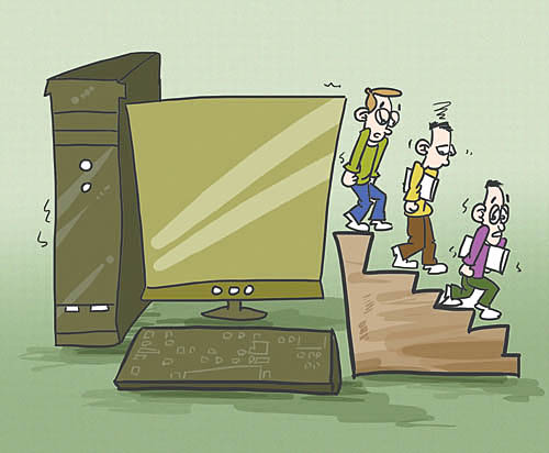1月8日,在港上市的聯(lián)想集團(tuán)宣布一系列資源調(diào)整方案,2009年第一季度將在全球削減2500個崗位,約占員工總數(shù)的11%;年內(nèi)將高級主管年薪及績效獎金等薪酬福利降低30%至50%。漫畫:曹一 |