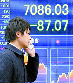 | 9日,日經(jīng)指數(shù)收低1.2%,觸及26年來收盤低位。傳真圖 | 昨天(3月9日)亞洲和歐洲市場再度涌現(xiàn)的一波拋售狂潮,使得全球主要股市紛紛陷入“熊市中的熊市”。因?yàn)榧幢阒粡慕衲觊_年算起,全球股市也已跌入了技術(shù)上的熊市,即自年初高點(diǎn)累計(jì)回調(diào)20%。 經(jīng)過上周的連續(xù)大跌,美國三大股指以及歐洲主要股指年內(nèi)跌幅已經(jīng)超過兩成。而在昨天,隨著亞太和歐洲股市的又一輪暴跌,不少亞洲股市年內(nèi)跌幅亦超過20%,日本等股市甚至跌至26年新低。