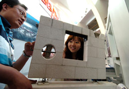 5月10日,第六屆中國(guó)(北京)國(guó)際綠色建材展覽會(huì)在北京展覽館開幕。以節(jié)約社會(huì)資源、保護(hù)環(huán)境為主旨的節(jié)能低耗的新型建材產(chǎn)品在展覽會(huì)上受到關(guān)注。圖為參觀者在展覽會(huì)上觀看北京金隅集團(tuán)的加氣混凝土系列產(chǎn)品。 |