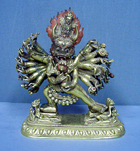 明銅泥金毗盧巴坐像,此尊男相菩薩身材魁梧,身軀四肢似蘊含無窮力量。其面相、姿態(tài)、衣飾以及座上鋪設,皆為藏式菩薩像的典型風格,體現(xiàn)力量與神性的結合。黃銅胎除鎏金外,在菩薩肉身處施泥金,表明該器當為皇家賞賜寺廟之用。 明永樂銅鎏金大威德金剛像,此尊佛像出自青海一古剎,系文革遺珍(是委托人在文革期間于當?shù)氐囊患乙睙拸S的廢銅堆里搶救回來的),是本場拍賣的重中之重。 另外如明鎏金金剛手坐像、清銅鎦金一字腿空行母像、宋代白玉佛像、道教天師銅造像和壁畫(10開)、16世紀波斯文、阿文手抄本伊斯蘭贊詞、伊斯蘭古蘭經、遼契丹文金質佛經長卷、遼水晶雕鳳紋嵌金片舍利函(內藏舍利)以及傳世極為罕見的明護法金剛黑唐卡等諸宗教藝術品皆為神物,彌足珍貴。 |