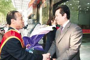 集團(tuán)董事長(zhǎng)華煒與勞模親切握手 |