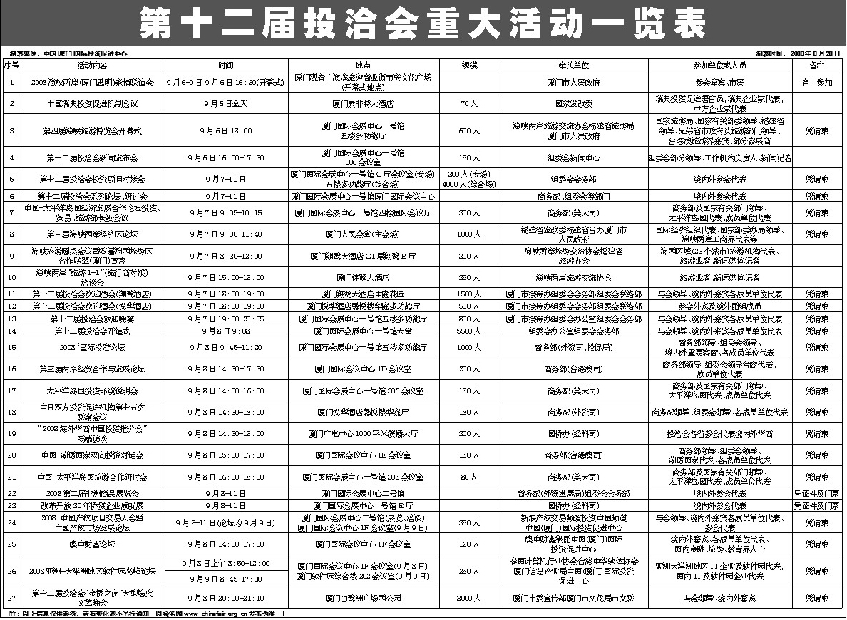 第十二屆投洽會(huì)重大活動(dòng)一覽表