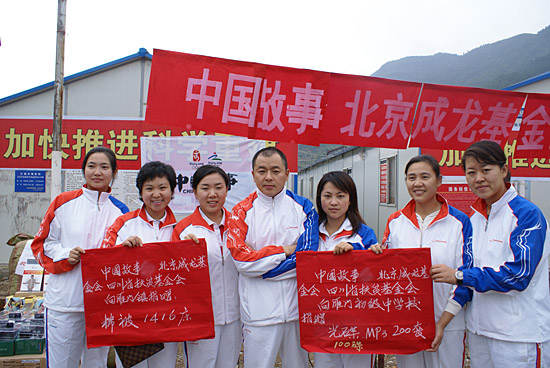 4016床棉被、1700套MP3和300張成龍奧運專輯CD,這批由北京奧組委“中國故事”核心運行團隊、北京成龍慈善基金會,聯(lián)合四川省扶貧基金會捐贈的慈善物資,于10月25日被送往綿陽市長虹集團培訓基地的北川中學、江油雁門鎮(zhèn)中學和劍閣縣政府。 據(jù)“中國故事”核心運行團隊工作人員介紹,在奧運會舉辦前期,就曾邀請北川中學的部分師生前往北京參觀鳥巢、水立方以及參與奧運文化活動,當時他們與孩子們約定,奧運會結(jié)束后,一定來四川看望他們。4016床棉被是2008的兩倍數(shù),象征著2008年北京奧運和2008年北京殘奧會對四川地震災區(qū)的關懷和援助。此次捐給災區(qū)的物資費用全部由成龍慈善基金會承擔。
