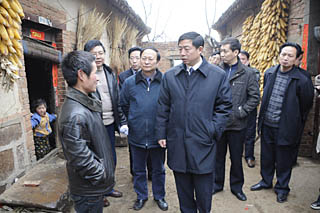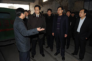 登封市人民政府市長鄭福林(左二)在了解企業(yè)發(fā)展情況。 |