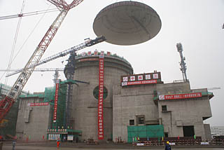 秦山二擴(kuò)3號(hào)反應(yīng)堆廠房穹頂成功吊裝。二三公司承擔(dān)3號(hào)機(jī)組核島安裝任務(wù)。 |