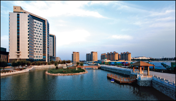 從北京天安門沿長安街驅(qū)車向東,即可到達(dá)潮白河畔。遠(yuǎn)遠(yuǎn)望去,緊鄰河畔的一座座高樓拔地而起,燕達(dá)國際健康城清晰可見。作為大型國際醫(yī)療健康產(chǎn)業(yè)項(xiàng)目,燕達(dá)國際健康城以“世界級的醫(yī)療服務(wù)、世界級的健康生活”為愿景,構(gòu)筑了一個涵蓋國際醫(yī)療、健康養(yǎng)護(hù)、健康管理、醫(yī)療科研、醫(yī)療教育、醫(yī)療國際交流等諸多領(lǐng)域的“大健康產(chǎn)業(yè)”。 歷時五年打造的燕達(dá)國際健康城將于2010年6月盛大揭幕。項(xiàng)目總投資100億元人民幣,占地面積50萬平方米(不含附屬用地),總建筑面積110萬平方米。燕達(dá)國際醫(yī)院擁有四座總計(jì)25萬平方米住院樓,一座7萬平方米的康復(fù)樓,一座5萬平方米的門診樓以及一座6萬平方米的醫(yī)技樓,總醫(yī)療面積43萬平方米。設(shè)置醫(yī)療床位2000張,康復(fù)床位1000張。國際健康養(yǎng)護(hù)中心總建筑面積60萬平方米,設(shè)置床位12000張。 燕達(dá)國際健康城由五大板塊構(gòu)成:國際醫(yī)院、金色年華健康養(yǎng)護(hù)中心、國際醫(yī)學(xué)研究院、國際醫(yī)護(hù)培訓(xùn)學(xué)院、國際會議中心。五大板塊相互獨(dú)立又互為補(bǔ)充和促進(jìn)。在自然景觀布局上,通過一條總面積近4萬余平方米的水系帶狀公園,將健康城自然地分隔為燕達(dá)國際醫(yī)院和金色年華健康養(yǎng)護(hù)中心兩大部分。健康城綠化率高達(dá)38%,園區(qū)內(nèi)各個景觀相互交融、相映生輝,形成了小橋流水、亭臺軒榭、花鳥樹木、游船雕塑,動靜相宜的特色美景。