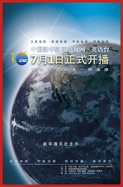 中國(guó)新華新聞電視網(wǎng)英語(yǔ)臺(tái)將開(kāi)播