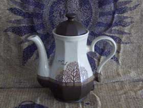 可我沒有找到與它們相配的茶壺,肯定當(dāng)初是有茶壺的,也許正是因為茶壺的離去,才使得它們落到了基督教的二手店里?后來我找到了一把韓國制的茶壺,比起這幾個杯子來,顯然是精致多了。它有優(yōu)雅的線條和我喜歡的那種穩(wěn)重的顏色,我最喜歡的還是上面的繪畫,就那么簡單的幾筆,就畫出了美麗的意境來。雖然和杯子不配套,但我還是買了下來。五新西蘭元,貴族的價格。