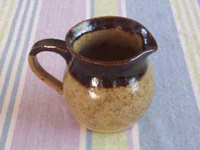 在一片壇壇罐罐中我發(fā)現(xiàn)了一個小奶罐,這是個淺褐色帶有米粒點的小奶罐,造型拙樸,矮矮胖胖的,好像單手叉腰的牧場老奶奶。奶罐的邊緣部分上了很濃的深褐色的釉,看起來很有裝飾效果。我買了下來,一新西蘭元。現(xiàn)在,只要有客人來,我都會用這小奶罐來招待咖啡和紅茶,很有鄉(xiāng)村的味道?晌疫是很喜歡我前面看到的那張桌子。但我下次再去的時候,已經(jīng)沒有了。可見,和我的審美習(xí)慣一樣的人還真不少呢。