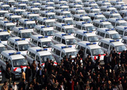 當(dāng)日,廣西近年來最大規(guī)模的一次救護車發(fā)放儀式在南寧市舉行,廣西壯族自治區(qū)衛(wèi)生廳將190輛救護車贈送給全區(qū)各地190個鄉(xiāng)鎮(zhèn)衛(wèi)生院,以進一步改善廣西鄉(xiāng)鎮(zhèn)衛(wèi)生院缺乏交通工具的狀況,改善其基本裝備水平,提升其急診急救的能力和水平,進而提高全區(qū)應(yīng)對公共衛(wèi)生突發(fā)事件的能力。 |