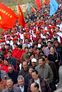 1月5日,上萬名中老年人健步在福州市閩江畔。 當(dāng)日,以“全民健身與奧運(yùn)同行”為主題的2007年福州市“迎奧運(yùn)”中老年人萬人健步行活動在美麗的閩江畔舉行,福州市各縣區(qū)的5萬多名老人同時參加了健步行活動。