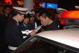 邯鄲市近日開(kāi)展夜間專(zhuān)項(xiàng)整治,治理酒后駕駛、無(wú)牌無(wú)證等交通違法行為,打造平安暢通交通環(huán)境。圖為邯鄲市交警利用酒精測(cè)試儀治理酒后駕車(chē)。