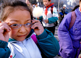 近日,針對(duì)青少年高發(fā)性近視所呈現(xiàn)的上升趨勢(shì),銀川市醫(yī)療衛(wèi)生機(jī)構(gòu)在部分中小學(xué)中啟動(dòng)了青少年視力保健干預(yù)機(jī)制,通過視力健康早期行為和環(huán)境因素的干預(yù)指導(dǎo)工作,如眼保健操的規(guī)范、錯(cuò)誤用眼習(xí)慣的矯正、燈光和課桌椅的調(diào)整等,讓中小學(xué)生視力逐漸得到恢復(fù)和保持。銀川市第二回民小學(xué)門口,一名小女孩告訴記者她的眼鏡已經(jīng)有500度。 |