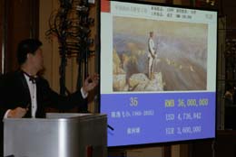 5月12日中國嘉德2007春季拍賣會(huì)在北京開槌,拍賣會(huì)的前兩日總成交額超過五億元人民幣。中國油畫及雕塑、中國影像藝術(shù)、當(dāng)代藝術(shù)、古籍善本及中國古代書畫五個(gè)專場均有上佳表現(xiàn)。油畫部分陳逸飛的《黃河頌》、靳尚誼的《畫僧髡殘》、書畫部分錢維城的《雁蕩圖》、馬麟的《梅竹圖》以及古籍部分宋版《五燈會(huì)元十卷》(存五卷)等等,均成為拍場上的焦點(diǎn)。