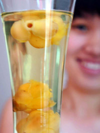 當(dāng)日,我國首家民營金花茶科學(xué)研究所在廣西防城港市成立。金花茶是一種珍稀古老植物,與銀杉、桫欏、珙桐等珍貴“植物活化石”齊名,是我國八種國家一級保護(hù)植物之一,也是一種瀕危種質(zhì)資源,具有極高的觀賞價值、科研價值、醫(yī)藥用價值及食品工業(yè)價值,被譽(yù)為“植物界的大熊貓”。目前全世界90%的野生金花茶僅分布在廣西防城港市十萬大山的蘭山支脈一帶。這是浸泡在杯中用于科學(xué)研究的金花茶。 |