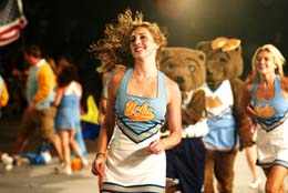 在旅游節(jié)的開幕式上,來自美國加州大學(xué)洛杉磯分校的啦啦隊(duì)上場表演。本報(bào)記者:鄭悅 攝 |