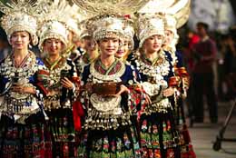 9月15日晚,在第十八屆上海旅游節(jié)的序幕上,黔東南苗族侗州自治州的姑娘們以酒為禮獻(xiàn)與觀眾。 本報(bào)記者:鄭悅