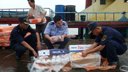 黃埔海關(guān)緝私警察日前在珠江口水域查扣一條走私凍品的無牌漁船,共查獲原產(chǎn)于巴西的牛舌、牛板筋等走私凍品2885箱。
