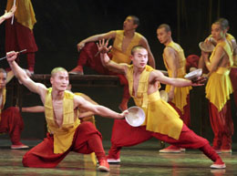 在第八屆中國藝術(shù)節(jié)上,來自中部六省的文化現(xiàn)象引起各方關(guān)注。圖為舞劇《風(fēng)中少林》劇照。新華社發(fā)