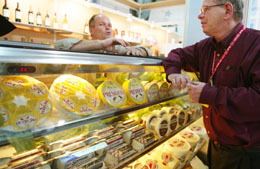 11月14日,外國(guó)參展商向觀眾介紹一種進(jìn)口乳酪。 當(dāng)日,國(guó)內(nèi)最高規(guī)格的西餐餐飲文化交流活動(dòng)——中國(guó)第四屆西餐文化節(jié)在上海浦東新國(guó)際博覽中心拉開(kāi)序幕。為期三天的中國(guó)西餐文化節(jié)將由“FHC國(guó)際烹飪藝術(shù)比賽”、“國(guó)際食品、飲料、酒店、餐飲、烘焙、零售設(shè)備博覽會(huì)”、“西餐行業(yè)發(fā)展論壇”、“國(guó)際廚藝交流”等多項(xiàng)活動(dòng)組成。中國(guó)西餐文化節(jié)是由中國(guó)烹飪協(xié)會(huì)發(fā)起與各省市地方政府聯(lián)合主辦的國(guó)家級(jí)中外西餐飲食文化交流盛會(huì),每?jī)赡昱e辦一屆。自2001年起,已分別在天津、廣州、北京舉辦了三屆。 |