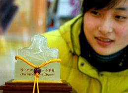 由北京奧組委授權(quán)的“奧運(yùn)御璽·中國印”日前亮相江蘇連云港。“奧運(yùn)御璽”以新疆白玉為主材,主體造型以蟠龍為印紐,正面雕刻有2008年奧運(yùn)會(huì)會(huì)徽圖案。