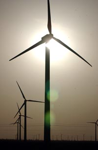 風(fēng)能資源豐富的甘肅省酒泉市將啟動(dòng)千萬(wàn)千瓦級(jí)風(fēng)電基地建設(shè)項(xiàng)目。甘肅省根據(jù)國(guó)家風(fēng)電發(fā)展規(guī)劃,提出“建設(shè)河西風(fēng)電走廊,打造西部陸上三峽”的戰(zhàn)略目標(biāo)。按照規(guī)劃,酒泉風(fēng)電基地建設(shè)選擇了風(fēng)電建設(shè)條件相對(duì)較好的8個(gè)風(fēng)電場(chǎng),規(guī)劃總裝機(jī)容量3565萬(wàn)千瓦。到2010年底,酒泉風(fēng)電基地累計(jì)裝機(jī)要達(dá)到341萬(wàn)千瓦,到2020年累計(jì)裝機(jī)容量達(dá)到1065萬(wàn)千瓦。 |