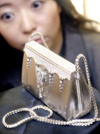 日前,在日本東京一家百貨公司舉辦的“新年幸運(yùn)手提包”發(fā)布會(huì)上,員工展示了一款白金手提包。這款用2182顆鉆石裝飾的手提包售價(jià)約為180萬美元。