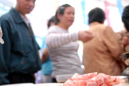很多人吃過生魚生蝦,有誰吃過生豬肉?正在?谂e行的2007中國(海南)國際熱帶農(nóng)產(chǎn)品冬季交易會上,一種吃酸奶長大的豬肉就可以生著吃,企業(yè)還現(xiàn)場煎肉,獨特的香味引起眾多客商和市民的好奇。