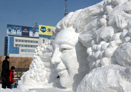 1月2日,市民觀看雪雕作品“豐收女神”。當(dāng)日,雪雕作品“豐收女神”在牡丹江市文化廣場(chǎng)亮相。這座雪雕作品全長(zhǎng)15米,高6米,寓意來(lái)年農(nóng)業(yè)大豐收。